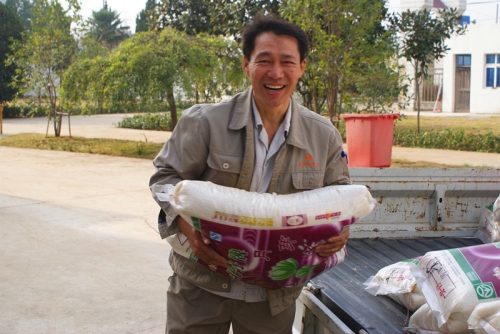 圖三、四:員工為敬老院送米